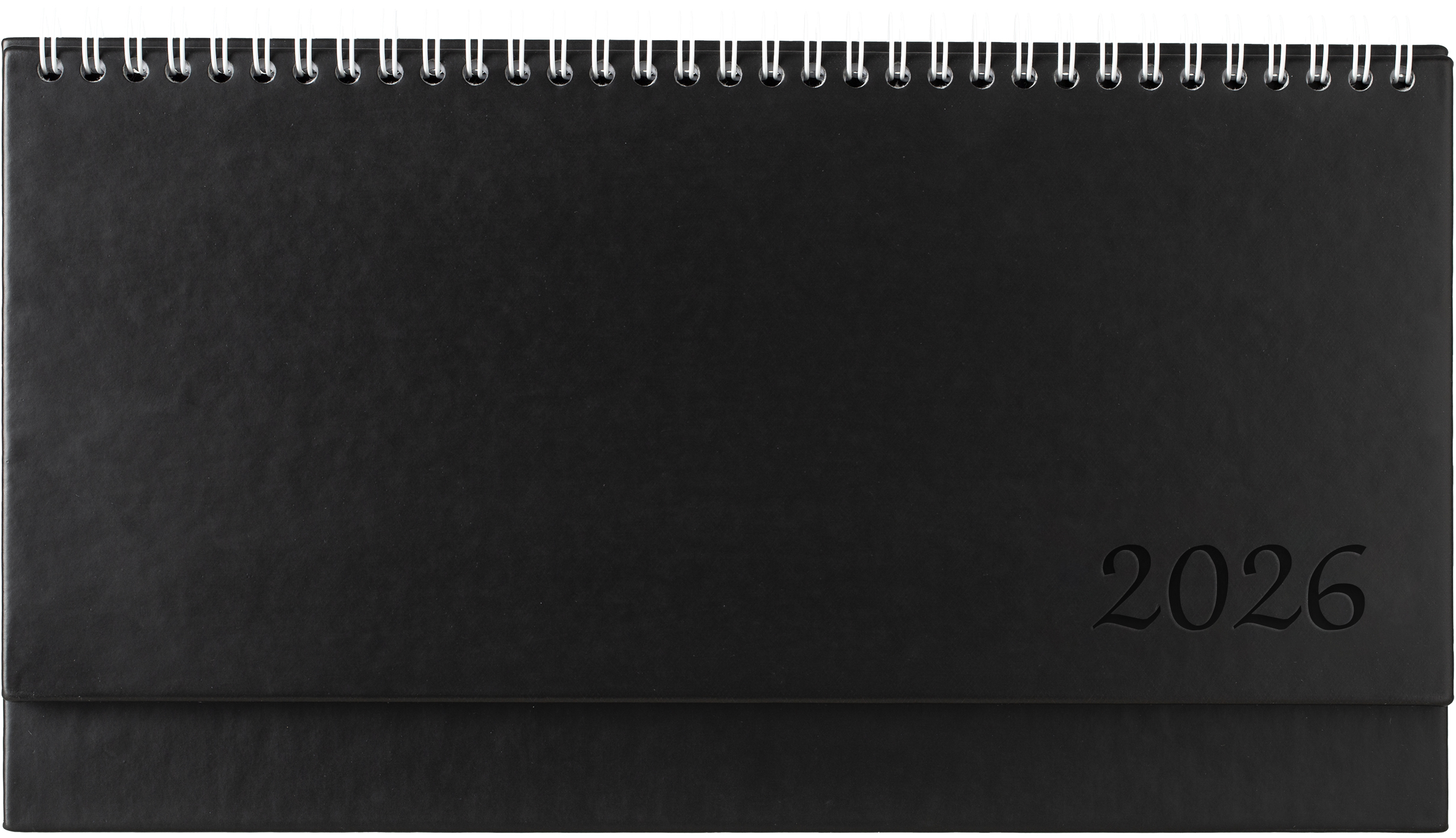 Корица: Луксозна корица облечена с термоактивна кожа, телен гребен, преге, Размер: 30 х 15.5 см Тяло: хартия жълт офсет - 120 стр., двуцветен печат, изрязани маркери по месеци.