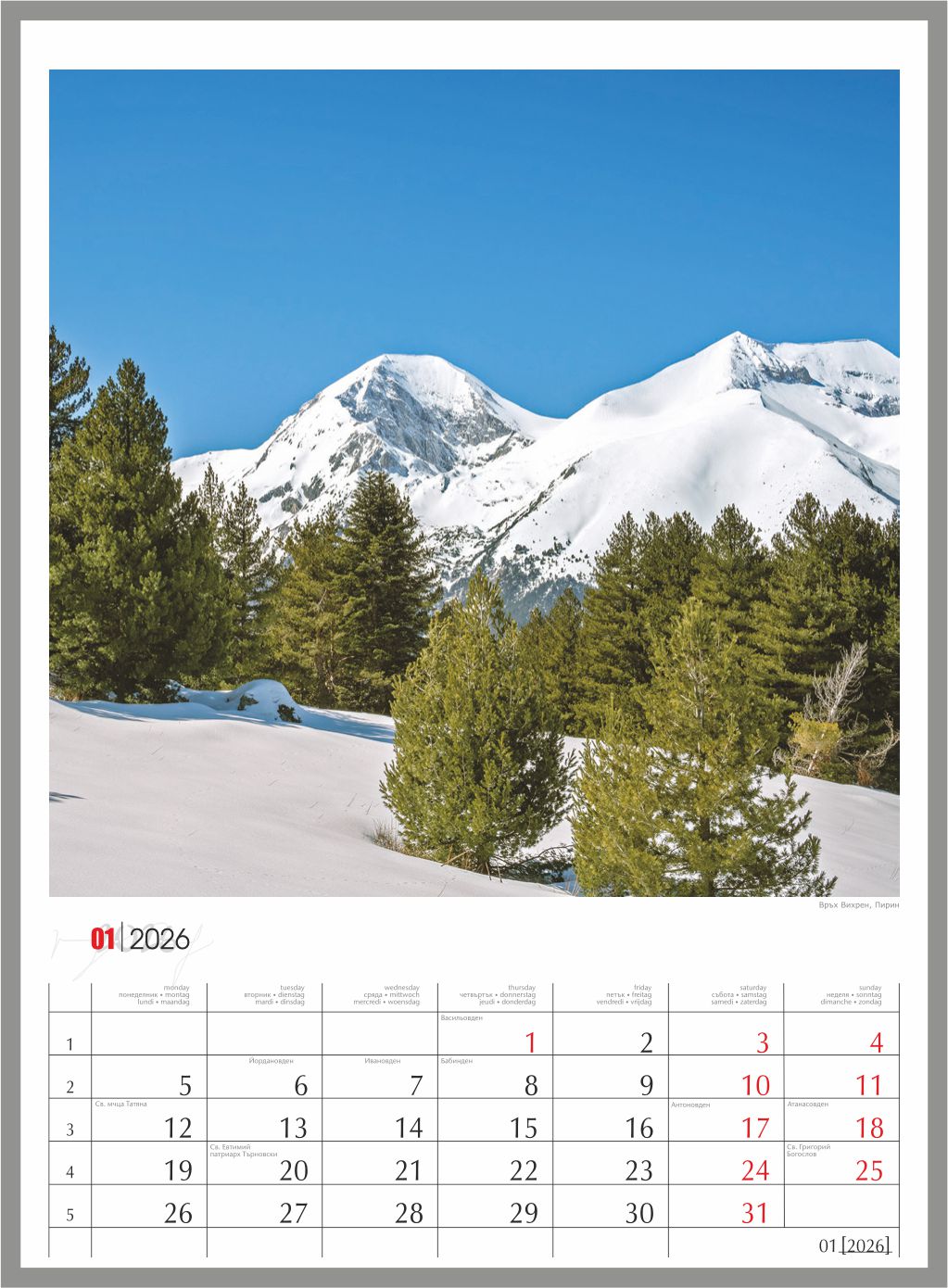 Формат: 320x430 мм, 12 снимки + корица, спирала,