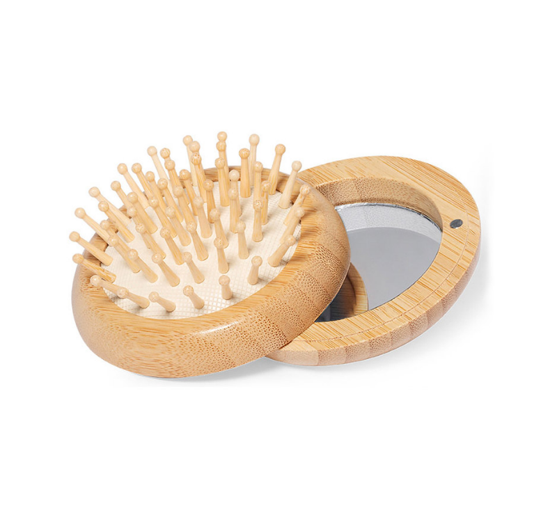 Джобно дамско огледалце от пластмаса с метално покритие. С нормални и увеличителни страни.