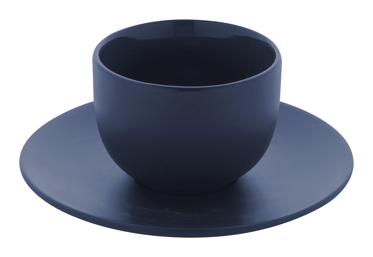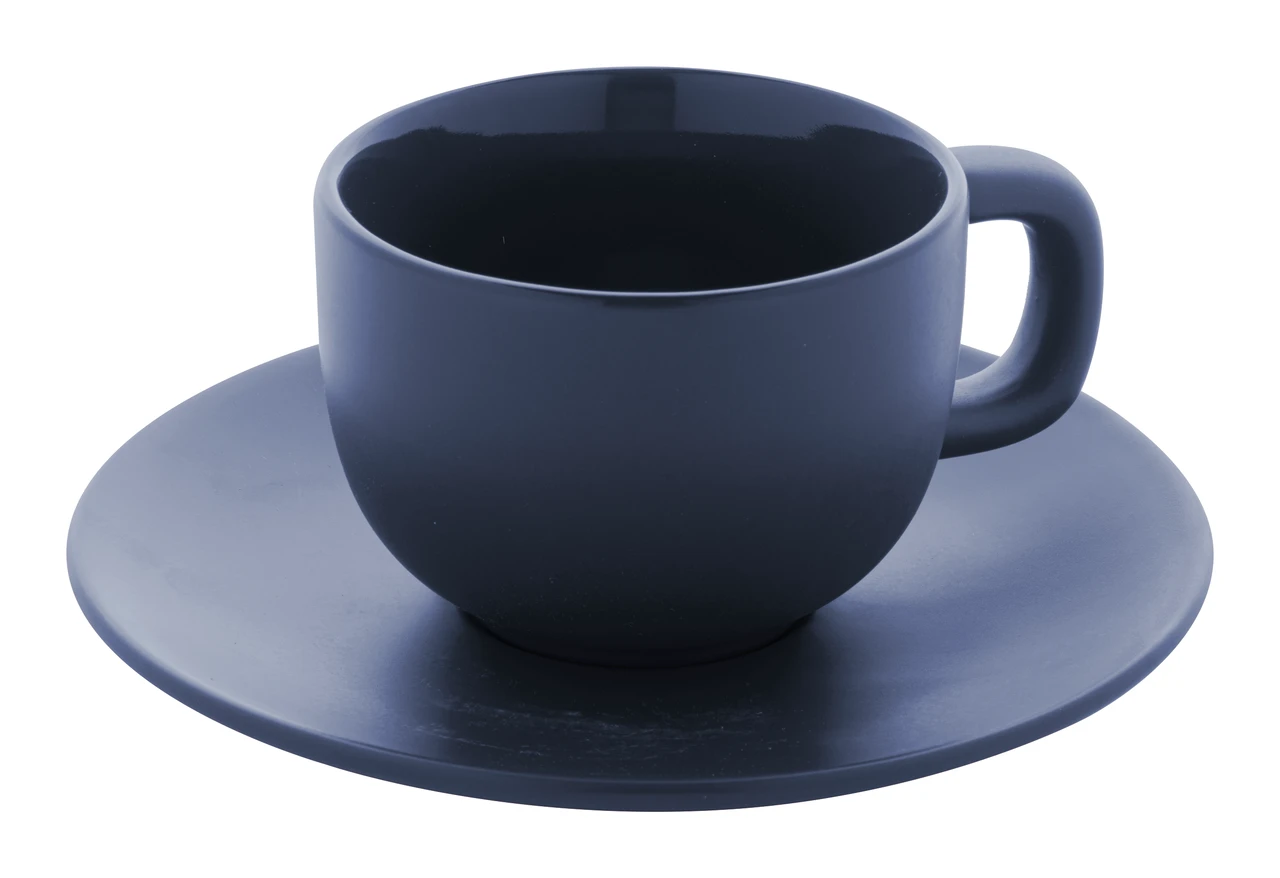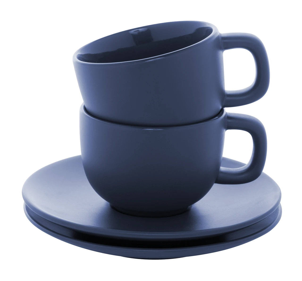 Висококачествен керамичен комплект чаши за капучино, включващ 2 чаши и чинийки. Матова външна и гланцова вътрешна повърхност. Опаковка: кутия от kraft хартия. Вместимост: 85 ml.
