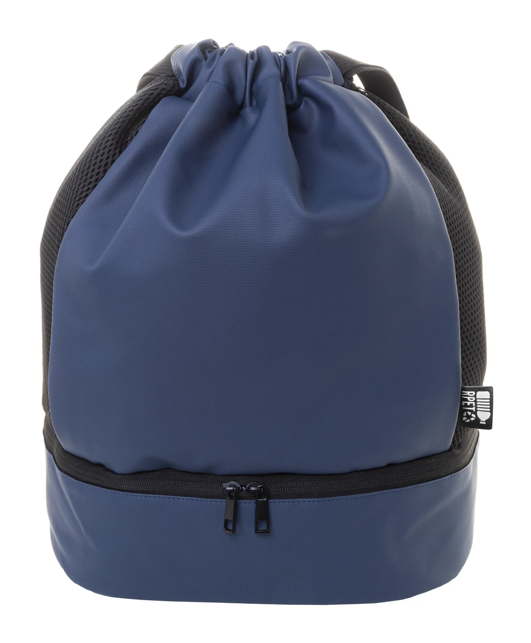 Мешка от рециклиран полиестер (RPET 600D) с покритие от еко кожа. Има отделение за обувки с цип и широки презрамки.