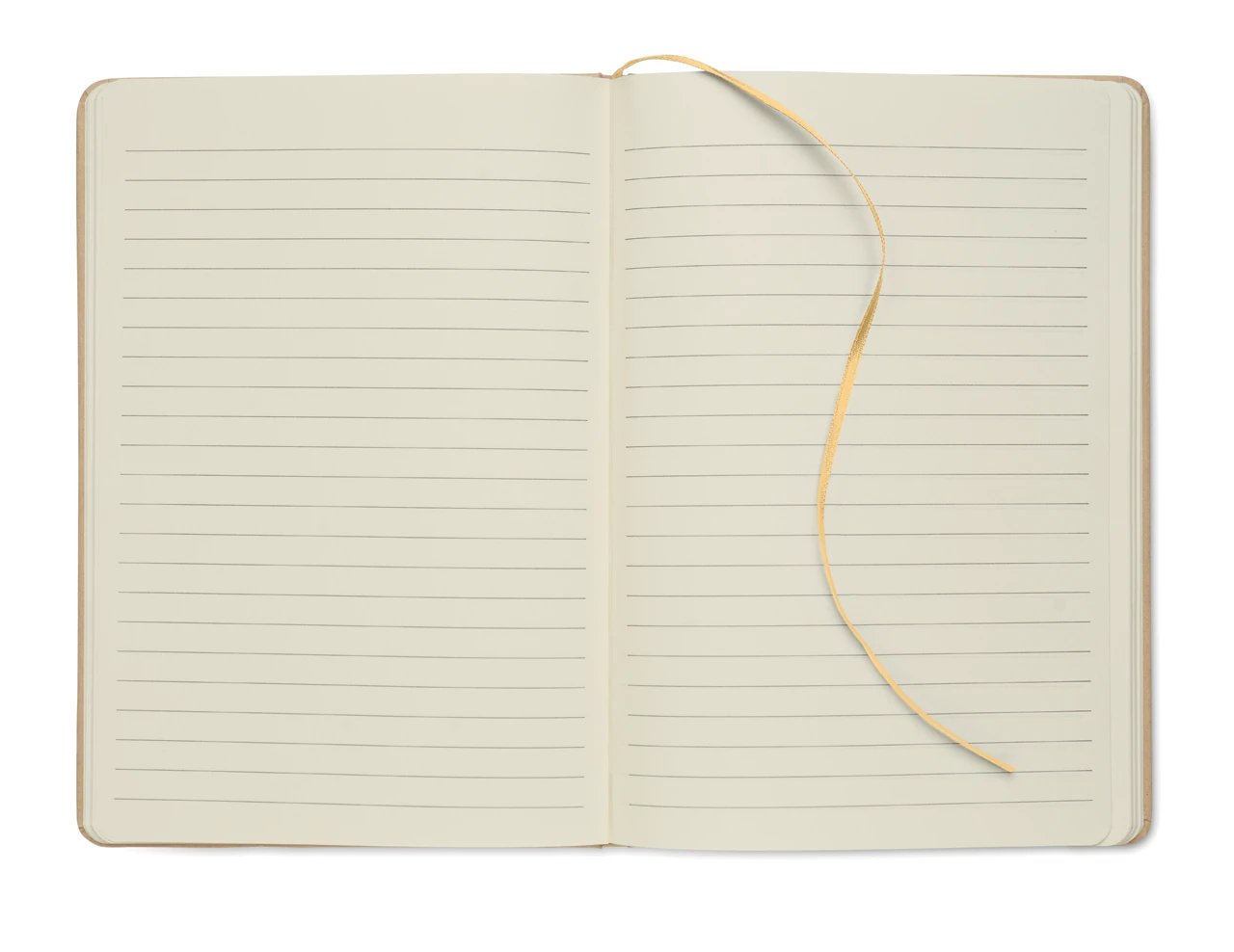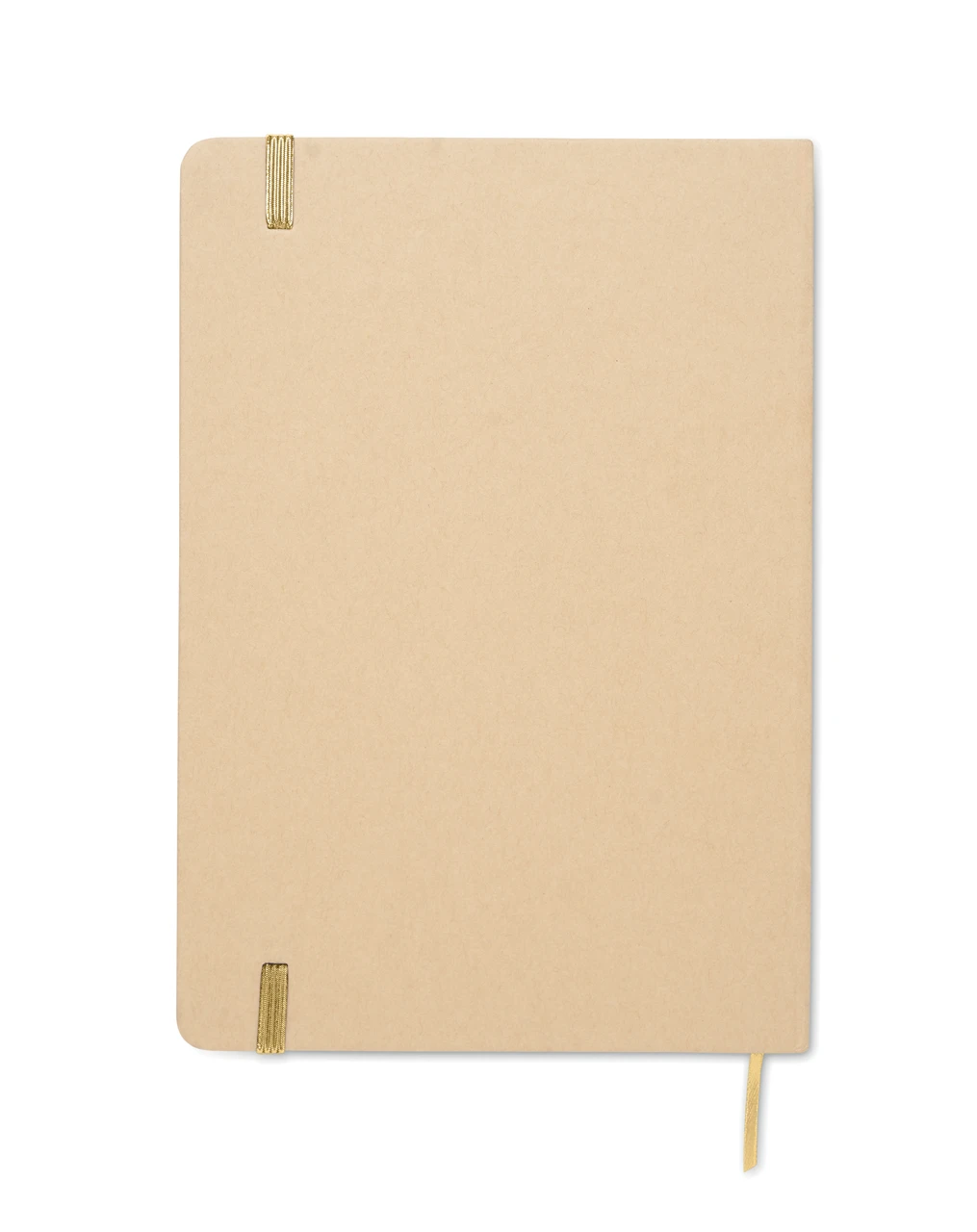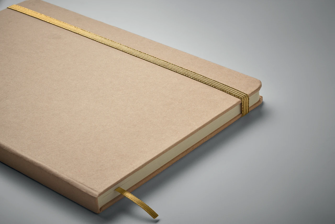 Екологичен бележник A5 с твърда корица от рециклиран картон (бежов цвят). Съдържа 160 страници (80 листа) с редове, изработени от рециклирана хартия. Разкрива цвета си при лазерно гравиране. Включва еластична лента за затваряне и маркираща лента в съответстващия цвят.