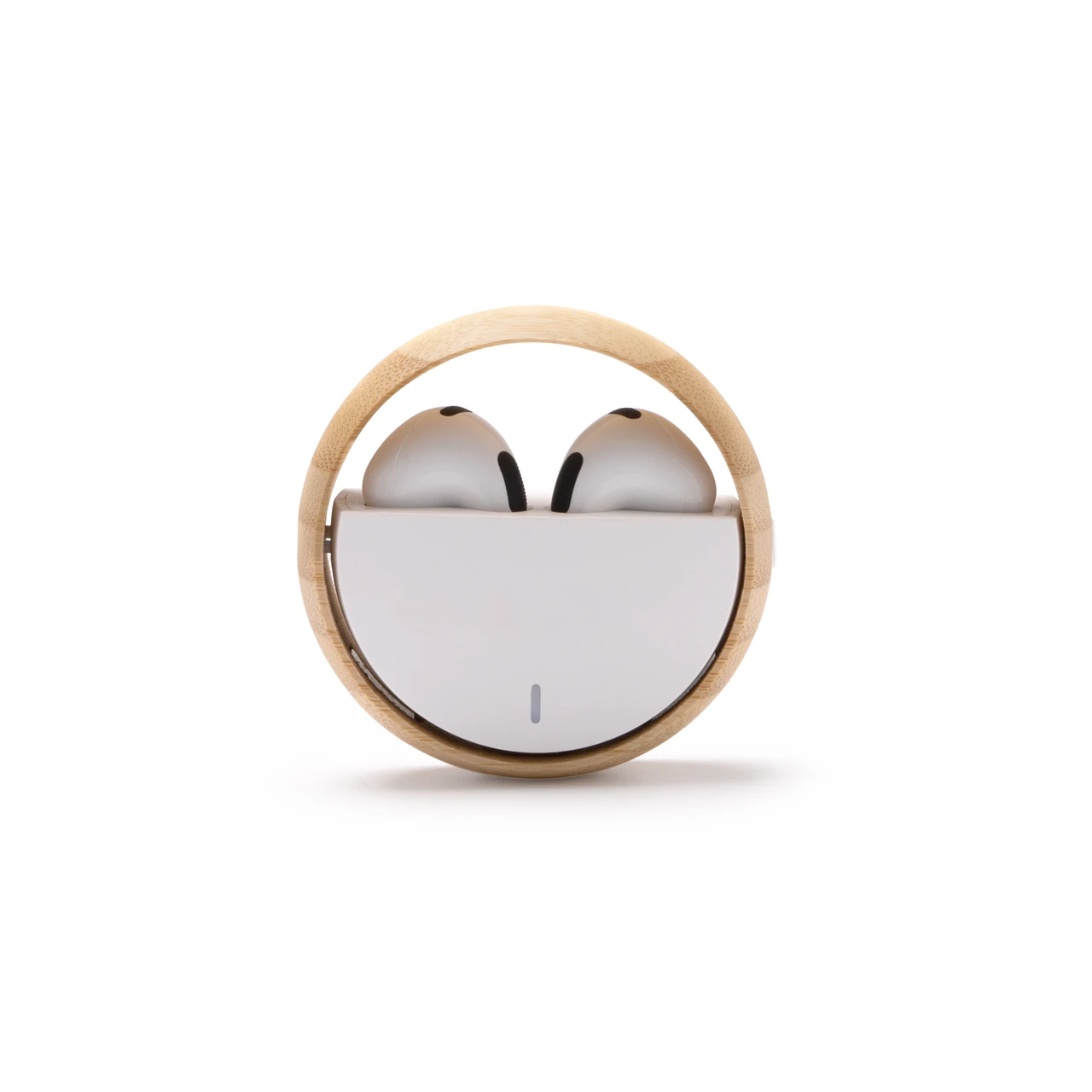 Стилни безжични слушалки с екологично изработена кутия от рециклиран ABS и бамбук. Вграден сензорен панел за управление с докосване. Включен е Type-C кабел за зареждане. Bluetooth 5.3 с обхват до 10 метра. Време на работа: 3-4 часа.