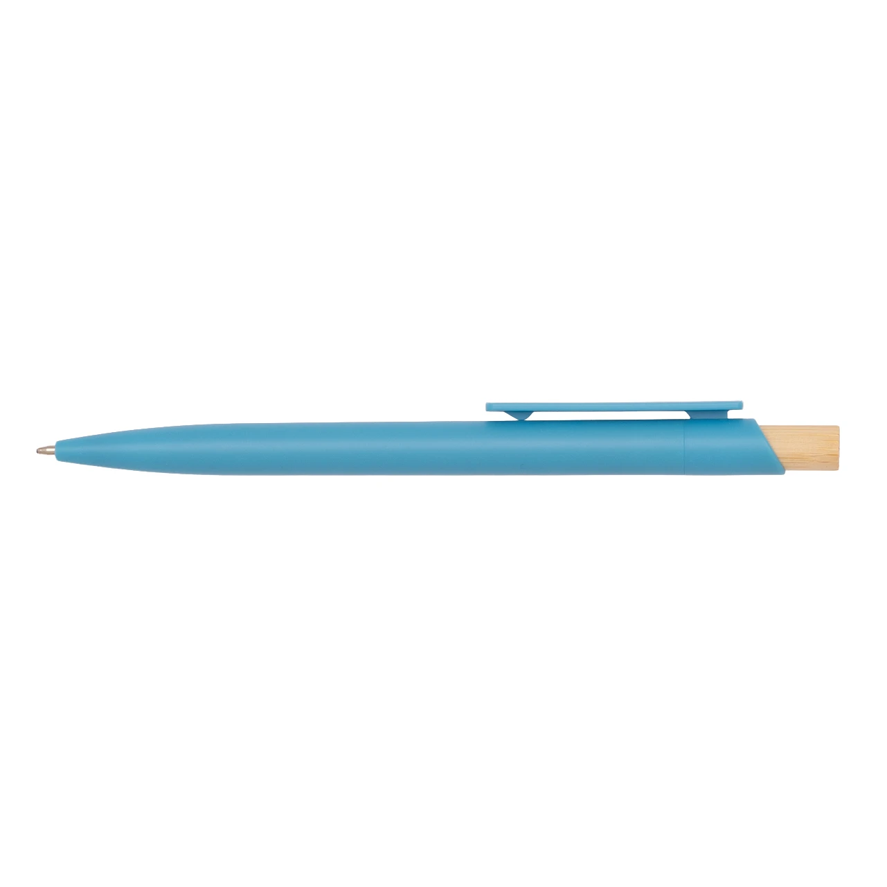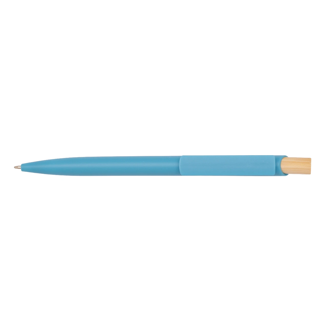 Пластмасова химикалка с широк прав клипс и бамбуков бутон.