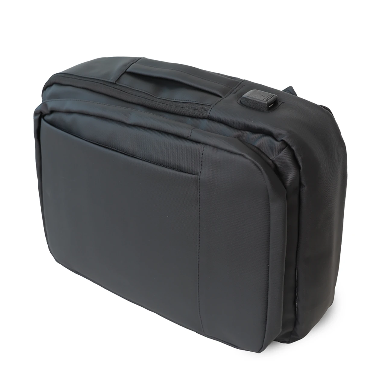Непромокаема раница за лаптоп 17" с модерен дизайн и практична функционалност. Изработена от висококачествена комбинация от 1680D и 600D полиестер, тя съчетава здравина и елегантен вид. Разполага с вграден USB порт за удобно зареждане в движение, страничен джоб за бутилка и четири отделения с цип за оптимална организация. Ергономичната конструкция гарантира комфорт при носене.