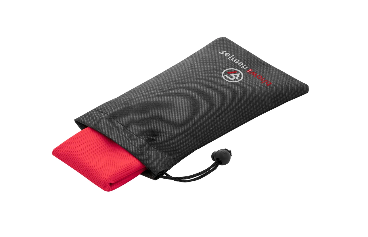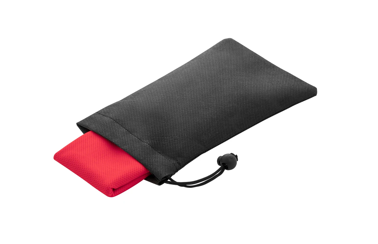 Удобна кърпа за охлаждане по време на спортна активност, изработена от 100% рециклиран полиестер (rPET). Включена е черна нетъкана торбичка за съхранение. Подходяща за многократна употреба и пране в пералня.