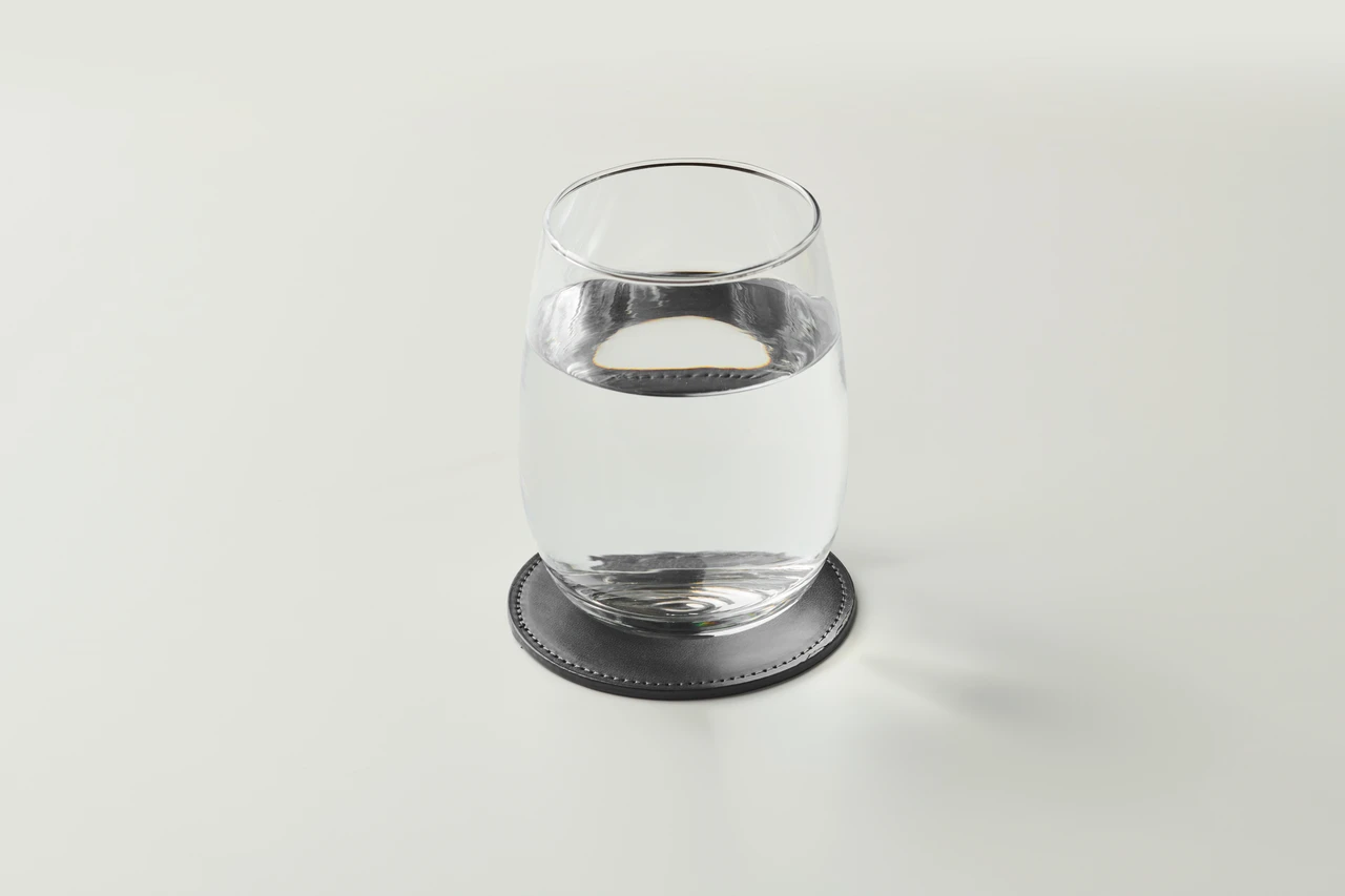 Кръгла подложка за чаша изработена от еко кожа.