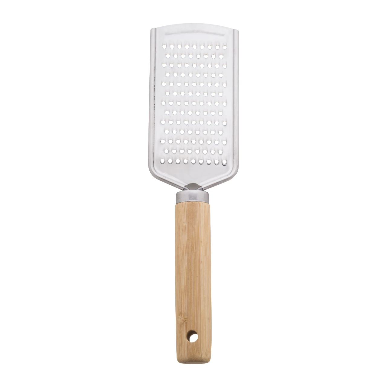 Комплект за сервиране на пица от 3 части от неръждаема стомана с бамбукова дръжка в памучна торбичка. Включва ренде за сирене, нож за пица и шпатула.