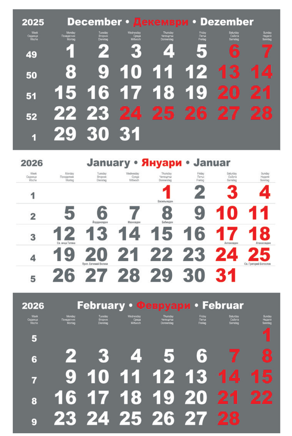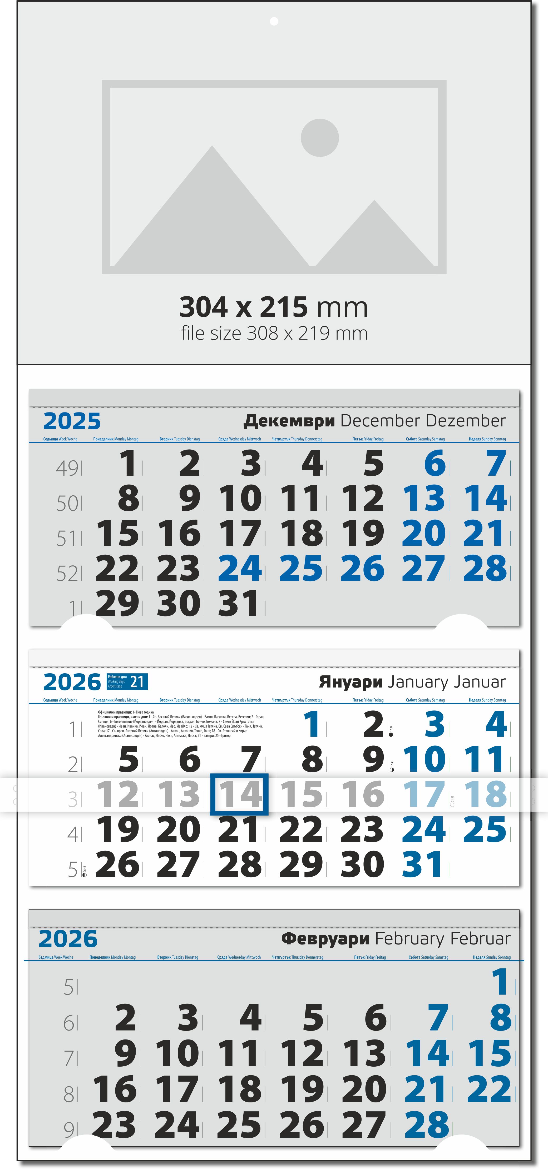 Рекламна глава: 31 х 20 см Християнски празници и именни дни.