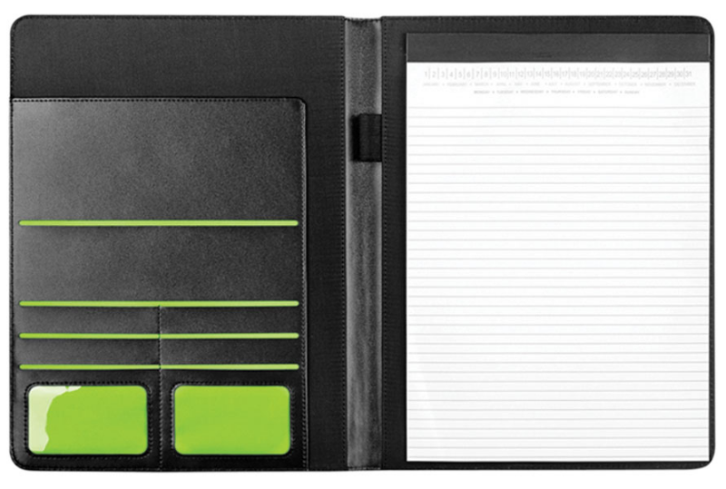 Папка с бележник и ластик, А4 20 листа с редове, цвят на хартията бял, място за химикалка и документи, закопчаване с ластик.