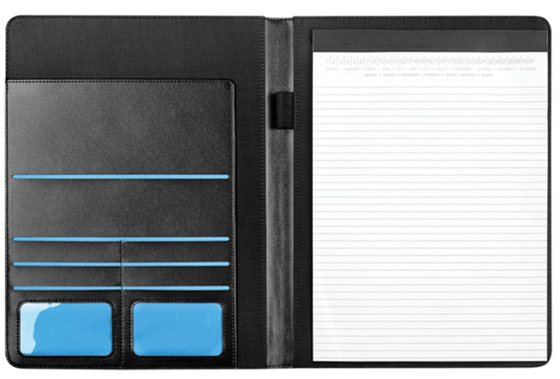 Папка с бележник А4 20 листа с редове, цвят на хартията бял, място за химикалка и документи, закопчаване с ластик.