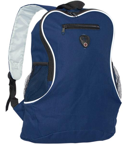 Раница с едно отделение, малък външен джоб с цип, два странични джоба от мрежа, подсилени дръжки, отвор за слушалки.
