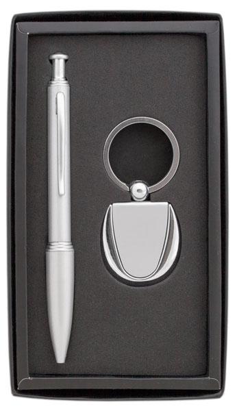 Комплект химикалка, рамка за снимка и ключодържател в кутия.