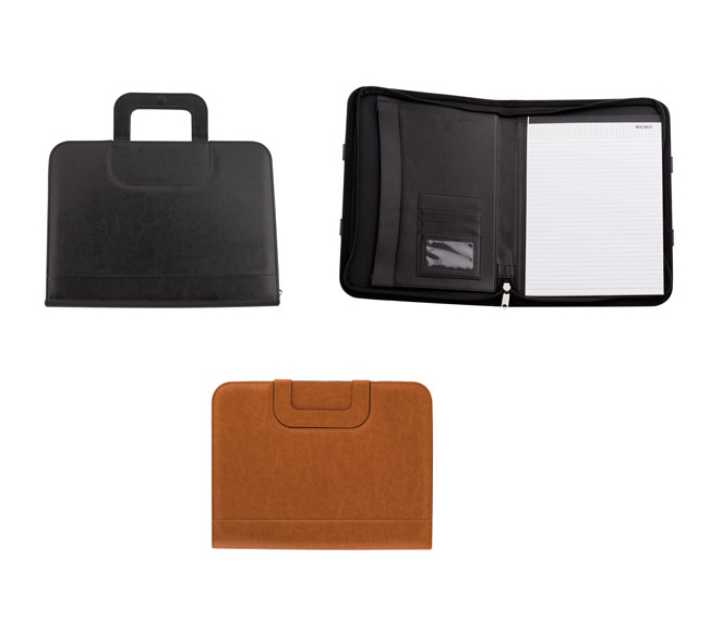 Конферентна папка с цип, дръжки с магнитно прибиране, бележник А4 30 листа с редове, цвят на хартията бял, място за документи, карти и визитки. Материал: еко кожа. Размер на артикула: 250х330x18 mm. Печатаемо поле: 110х100 mm. Печат: ситопечат, сухо преге