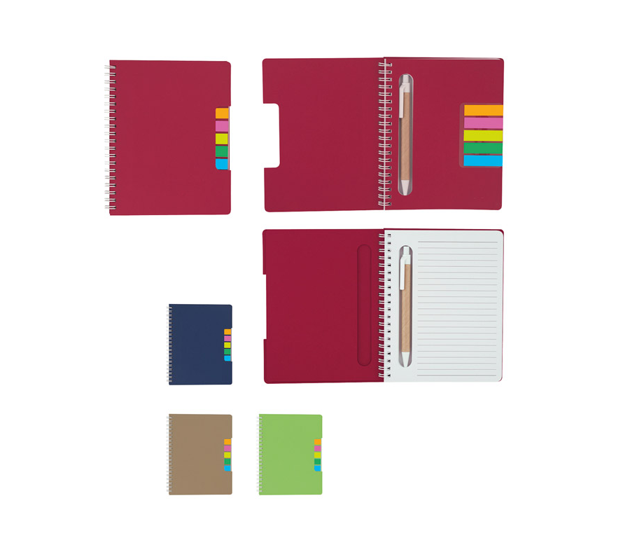 Еко тефтер с еко химикалка, 70 листа с редове, цвят на хартията бял, самозалепващи листчета.