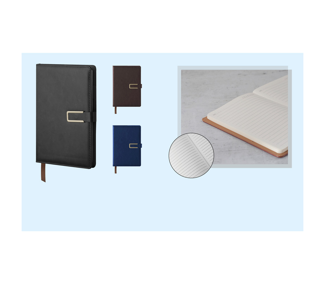Тефтер A5 с разделител и магнитно закопчаване, 96 листа с редове, цвят на хартията слонова кост, твърда корица. Материал: еко кожа, хартия, метал. Размер на артикула: 145х220х20 mm. Печатаемо поле: 60х60 mm. Печат: тампонен, гравиране, сухо преге.