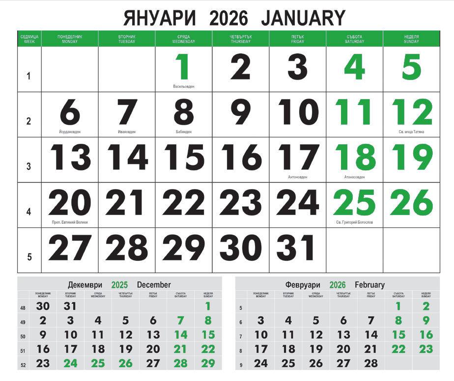 Еднолистовите рекламни бизнес-счетоводни календари, съдържат счетоводна, данъчна и бизнес информация, както следва: