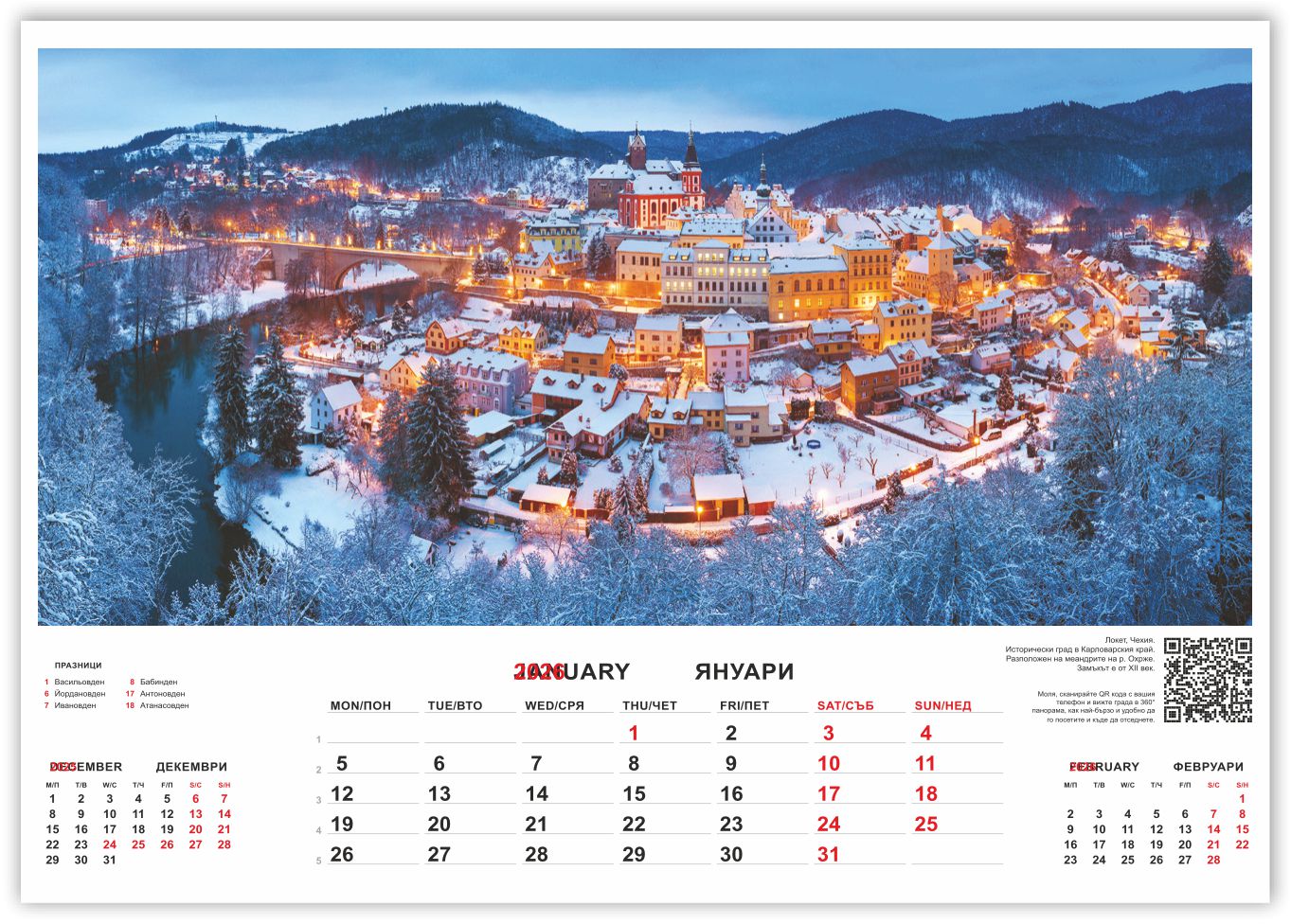 13 листов календар за 2026 година "СТАРИННИ ГРАДОВЕ"