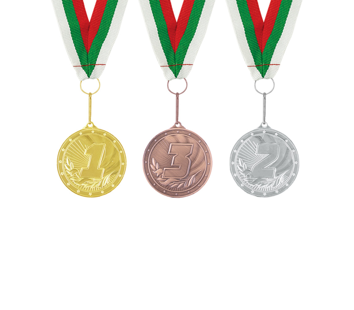 Медал. Материал: метал. Размер на артикула: Ø50 mm. Печатаемо поле гръб: Ø45 mm. Печат: гравиране, обемен/ламиниран стикер.