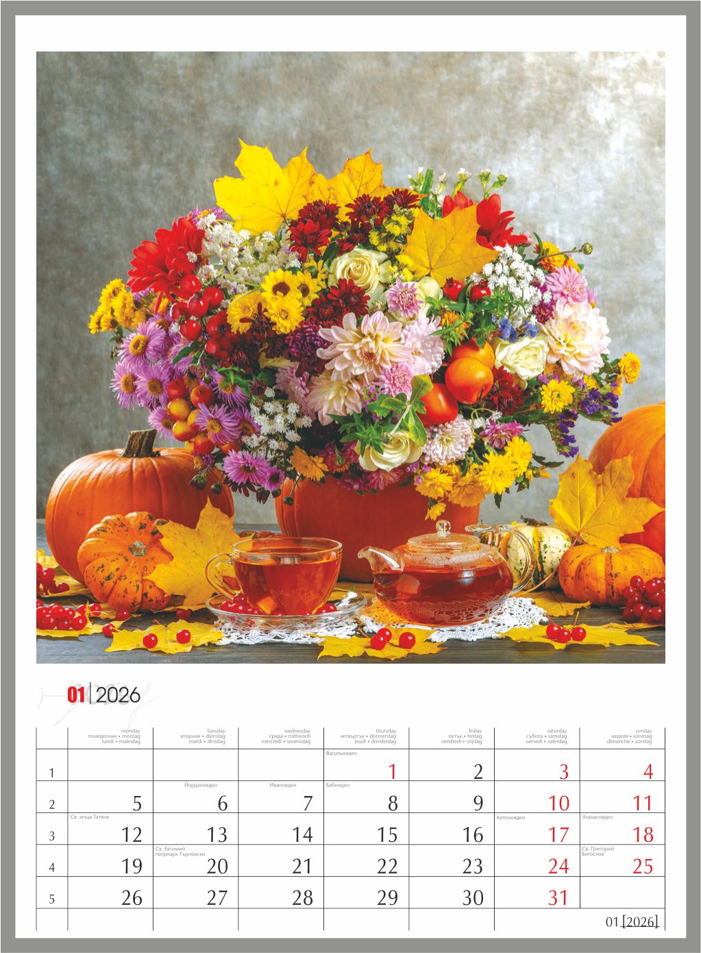 Формат: 320x430 мм, 12 снимки + корица, спирала,