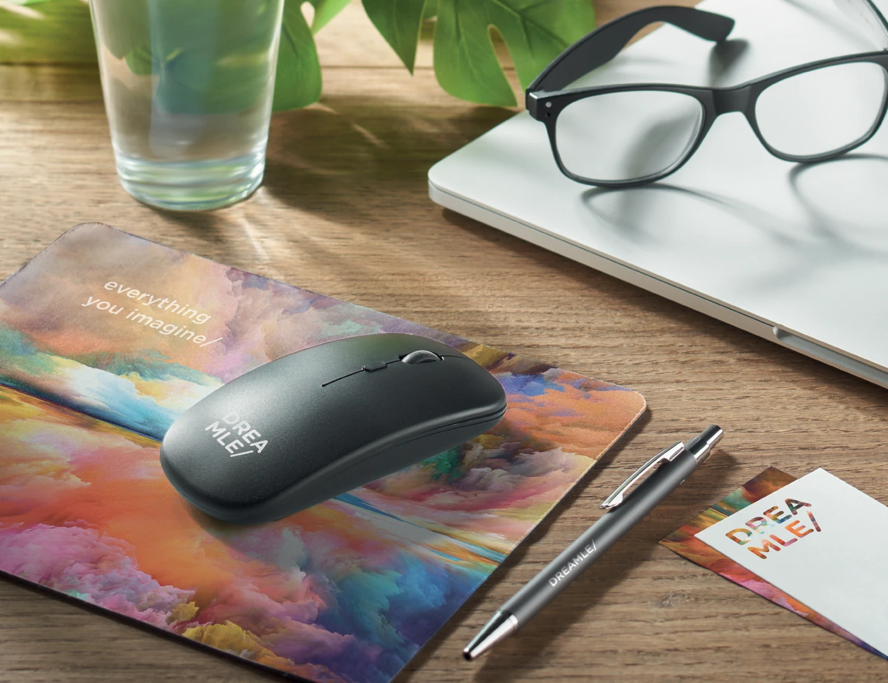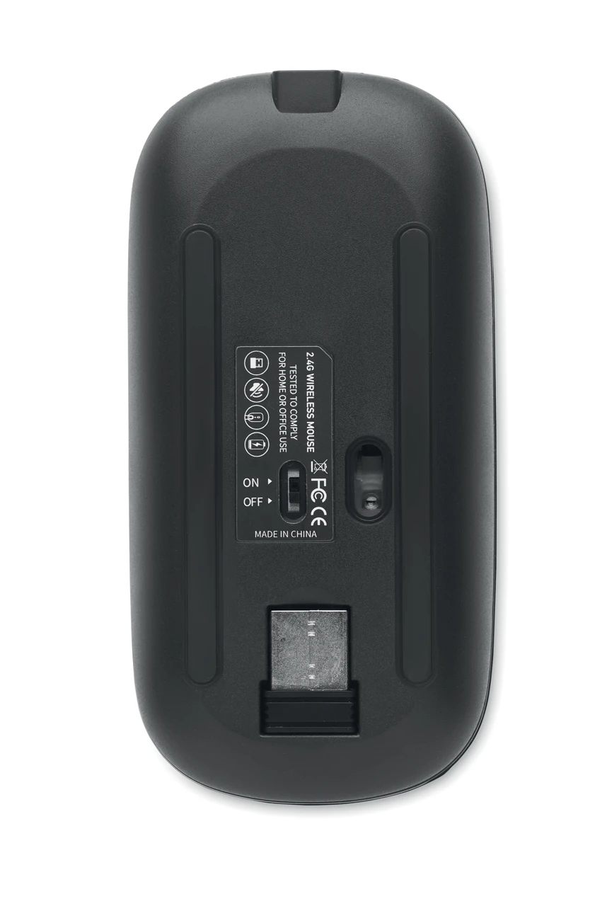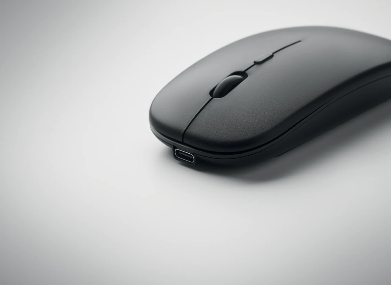 Безжична оптична мишка, изработена от рециклирана ABS пластмаса. Вградена батерия 500 mAh и включен USB Type-C кабел за зареждане. Три опции за DPI – 800, 1200 и 1600.