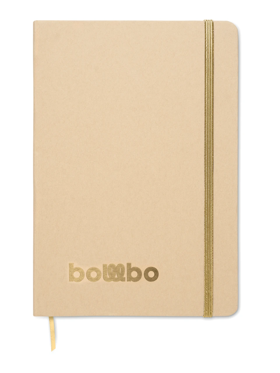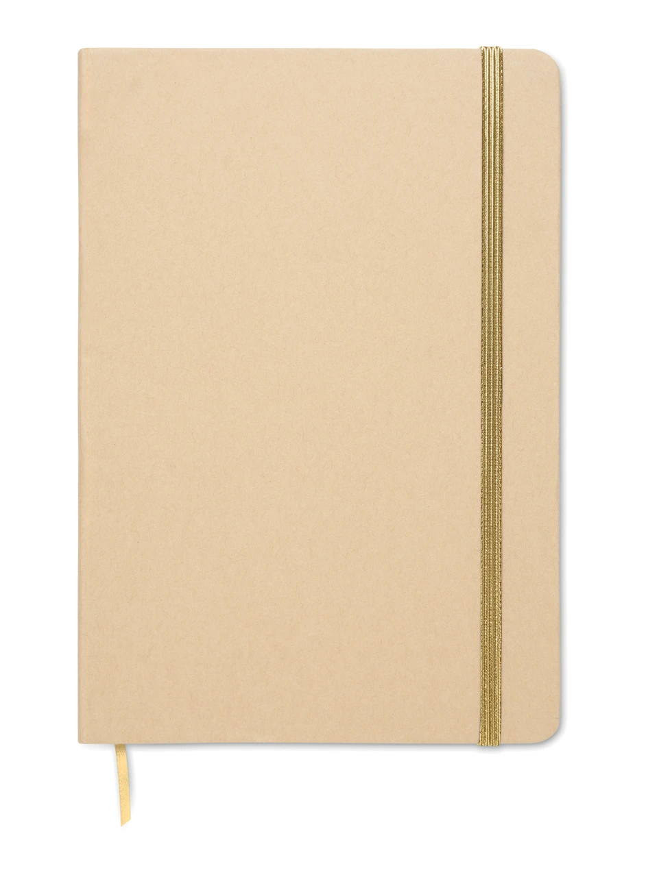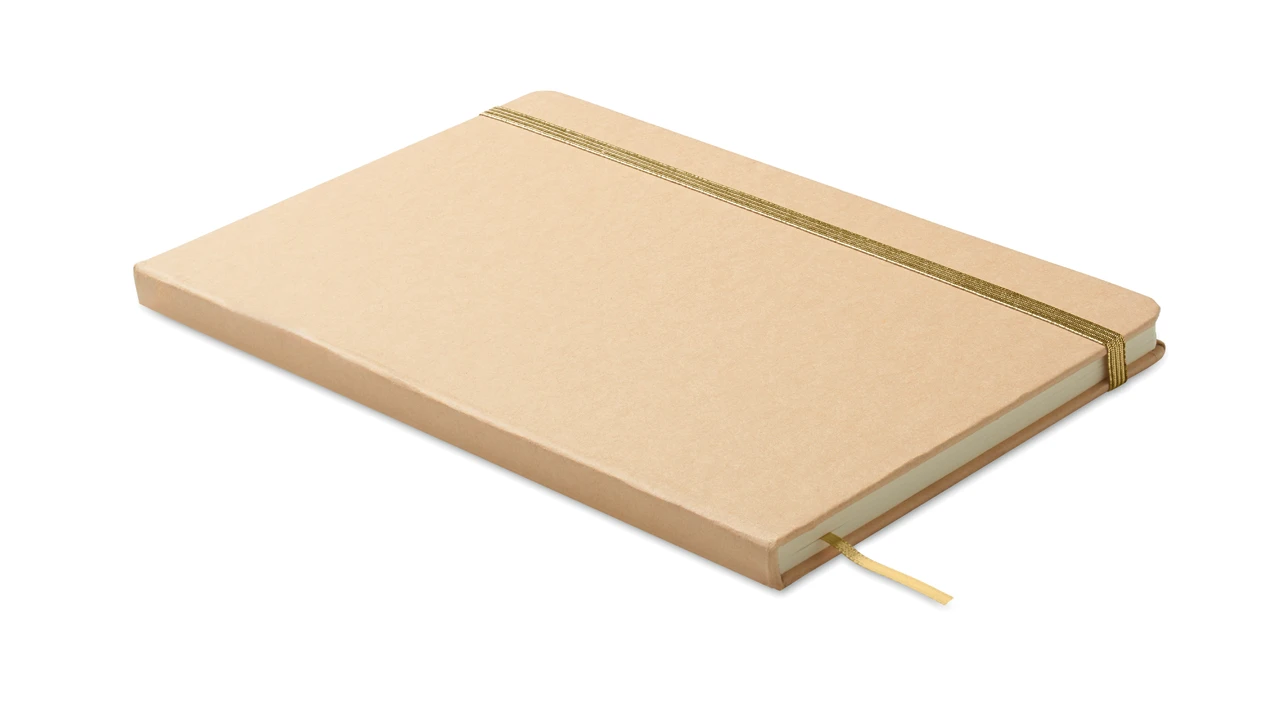 Екологичен бележник A5 с твърда корица от рециклиран картон (бежов цвят). Съдържа 160 страници (80 листа) с редове, изработени от рециклирана хартия. Разкрива цвета си при лазерно гравиране. Включва еластична лента за затваряне и маркираща лента в съответстващия цвят.