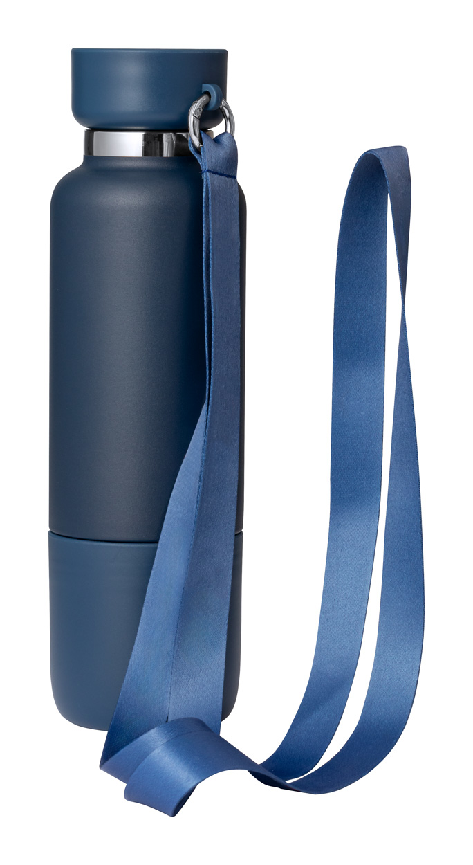 Термос от неръждаема стомана с вместимост 500 ml. Термосът разполага с презрамка за носене, вградена пластмасова чаша (300 мл.), както и контейнер с разделение на капачката.