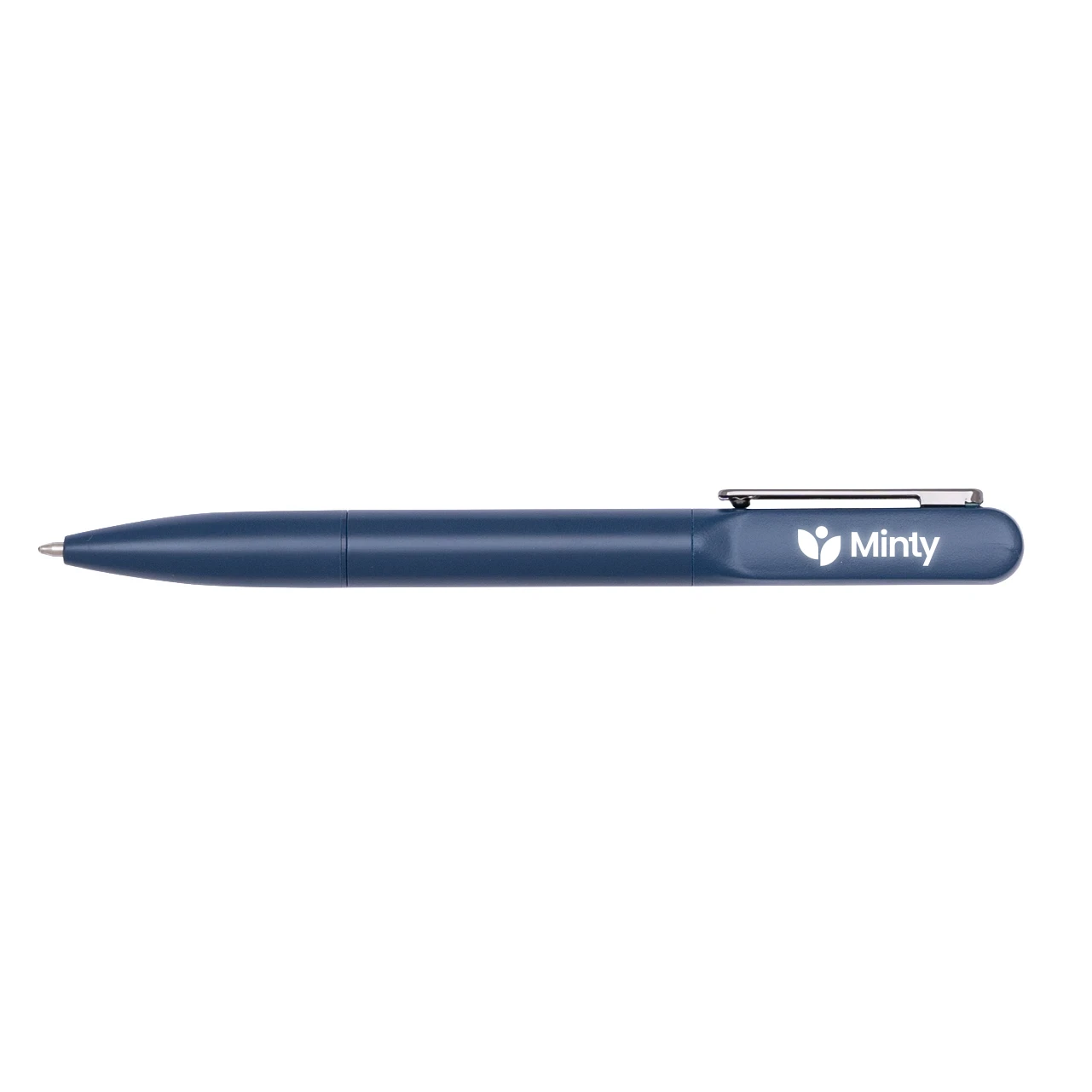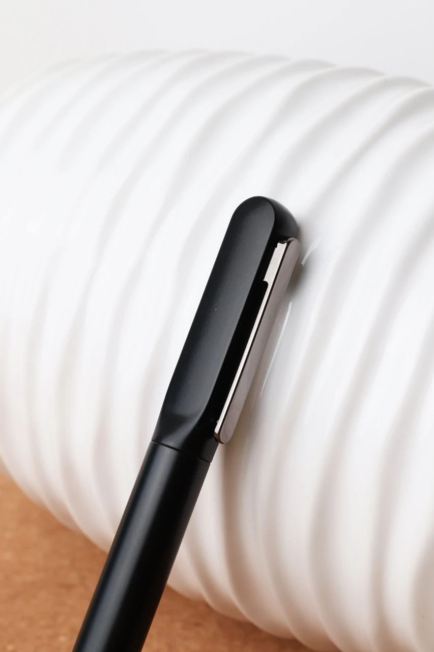 Метална химикалка с гладко цилиндрично тяло, което завършва с плоска горна част. След гравиране в тази част, при включване на химикалката надписът свети в бяла светлина. Това придава на химикалката модерна и футуристична визия, правейки я идеална за хора, които търсят комбинация от стил, технология и функционалност.