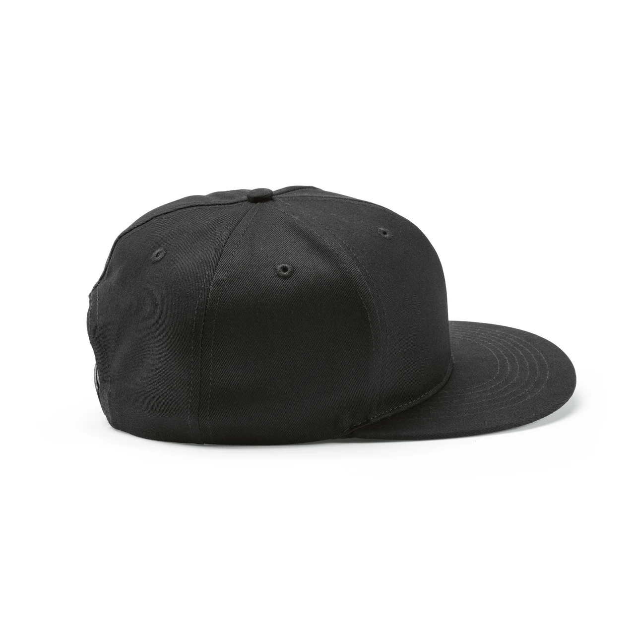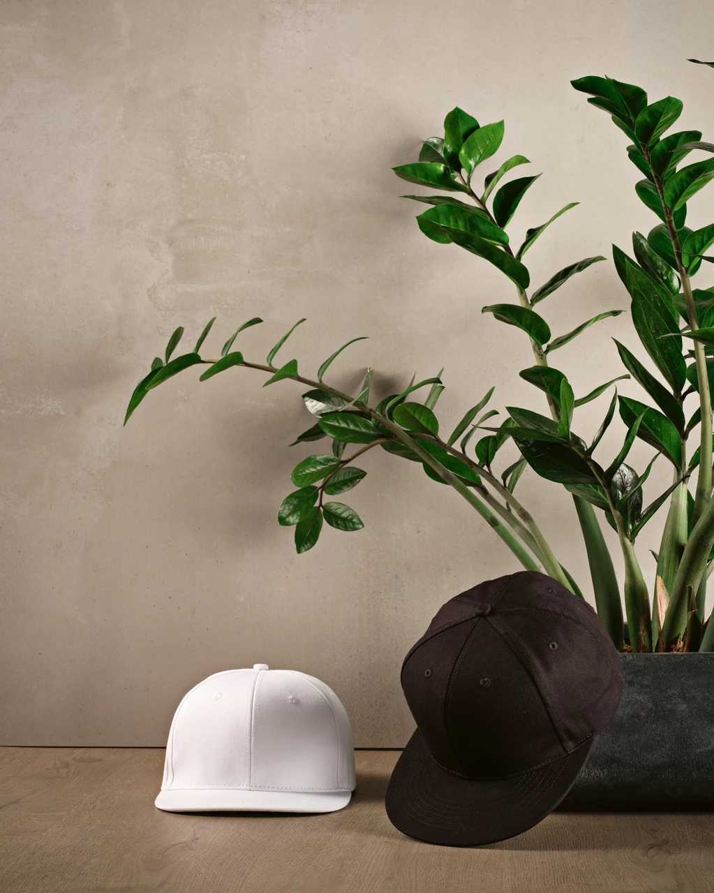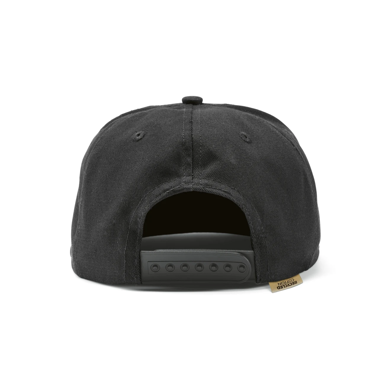 ЖШапка с плоска права козирка с 5 панела, изработена от рециклиран памук 280 гр/м². С регулируема пластмасова закопчалка тип snapback за плътно прилягане