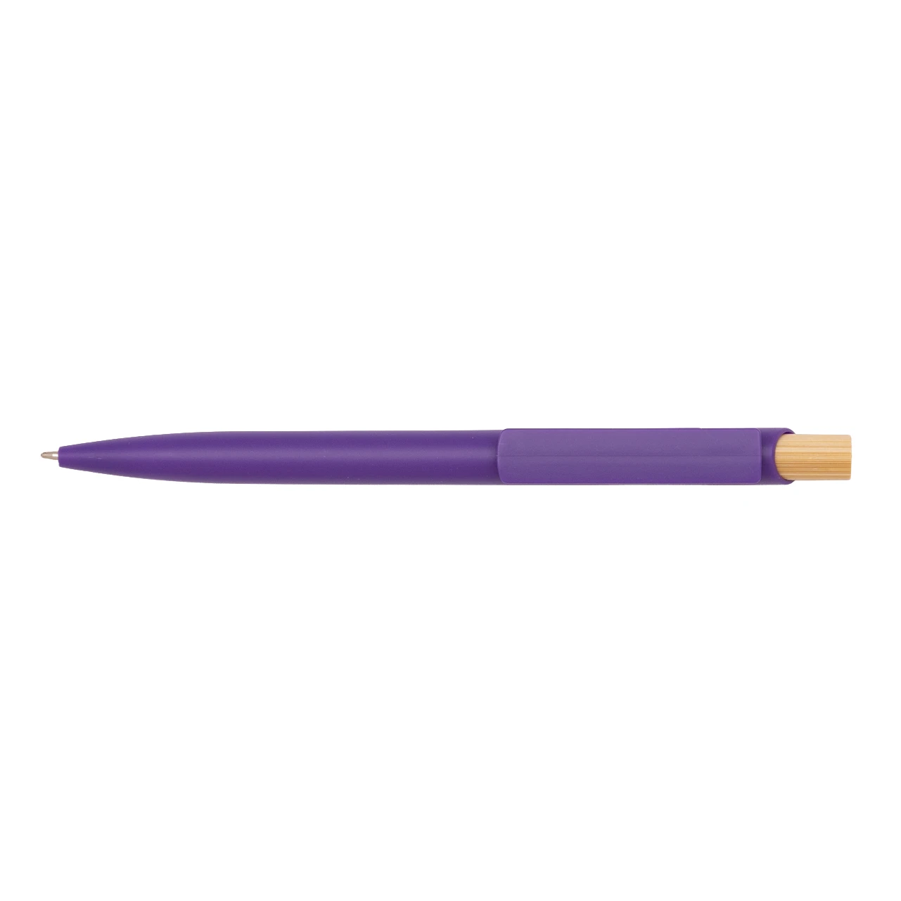 Пластмасова химикалка с широк прав клипс и бамбуков бутон.