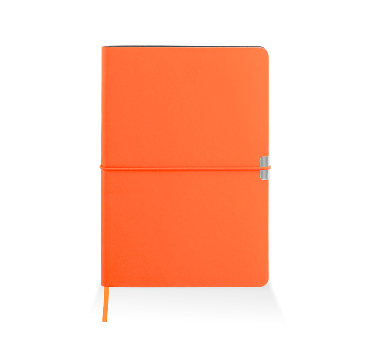 Бележник A5 с меки корици от рециклирана термо еко кожа. Съдържа 160 тонирани страници на редове.