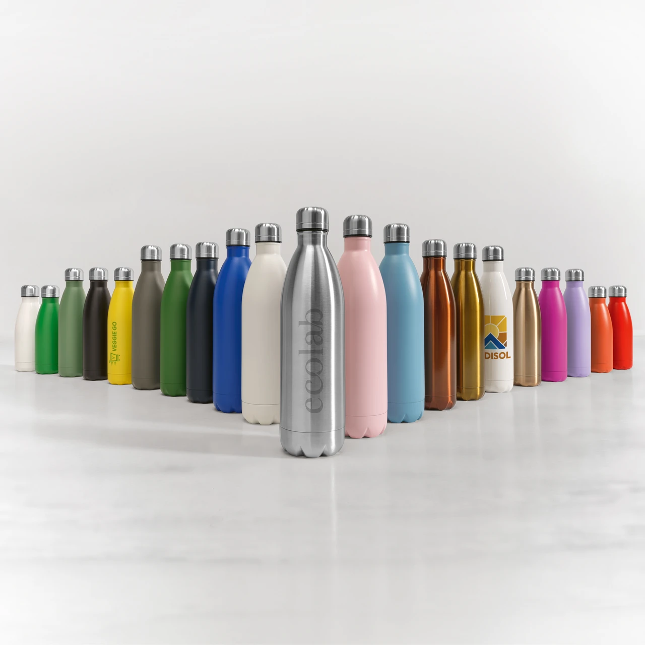 Бутилка 430 ml, изработена от рециклирана неръждаема стомана за сублимация. Двойно изолираната стена поддържа напитките ви топли в продължение на 14 часа и студени в продължение на 48 часа. Бутилката е херметична и подходяща за съдомиялна машина. Привлекателен аксесоар, който ще ви помогне да останете хидратирани. Предлага се в 4 различни обема и във варианти с метално покритие, матово покритие и за сублимация. Доставя се в екологична крафт кутия.