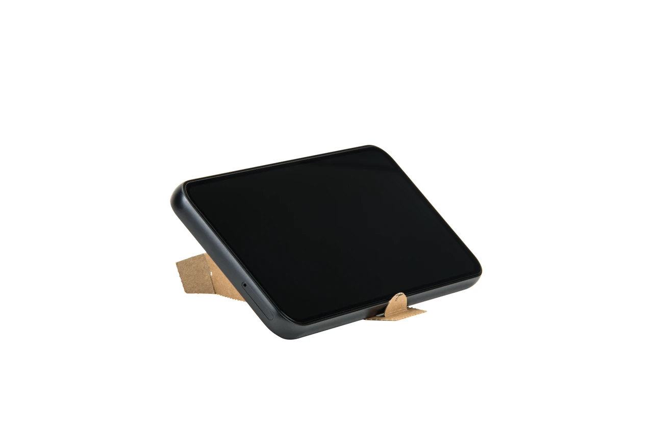 Компактно сгъваемо зарядно устройство за едновременно зареждане на до три устройства: смартфон (15W), слушалки (5W) и часовник (2,5W). Изработено от 100% рециклирана ABS пластмаса, с магнитна плоча за стабилно закрепване на телефона. Включва USB-C кабел и допълнителен магнитен пръстен за устройства без вграден магнит. Доставя се в еко-опаковка от крафт хартия