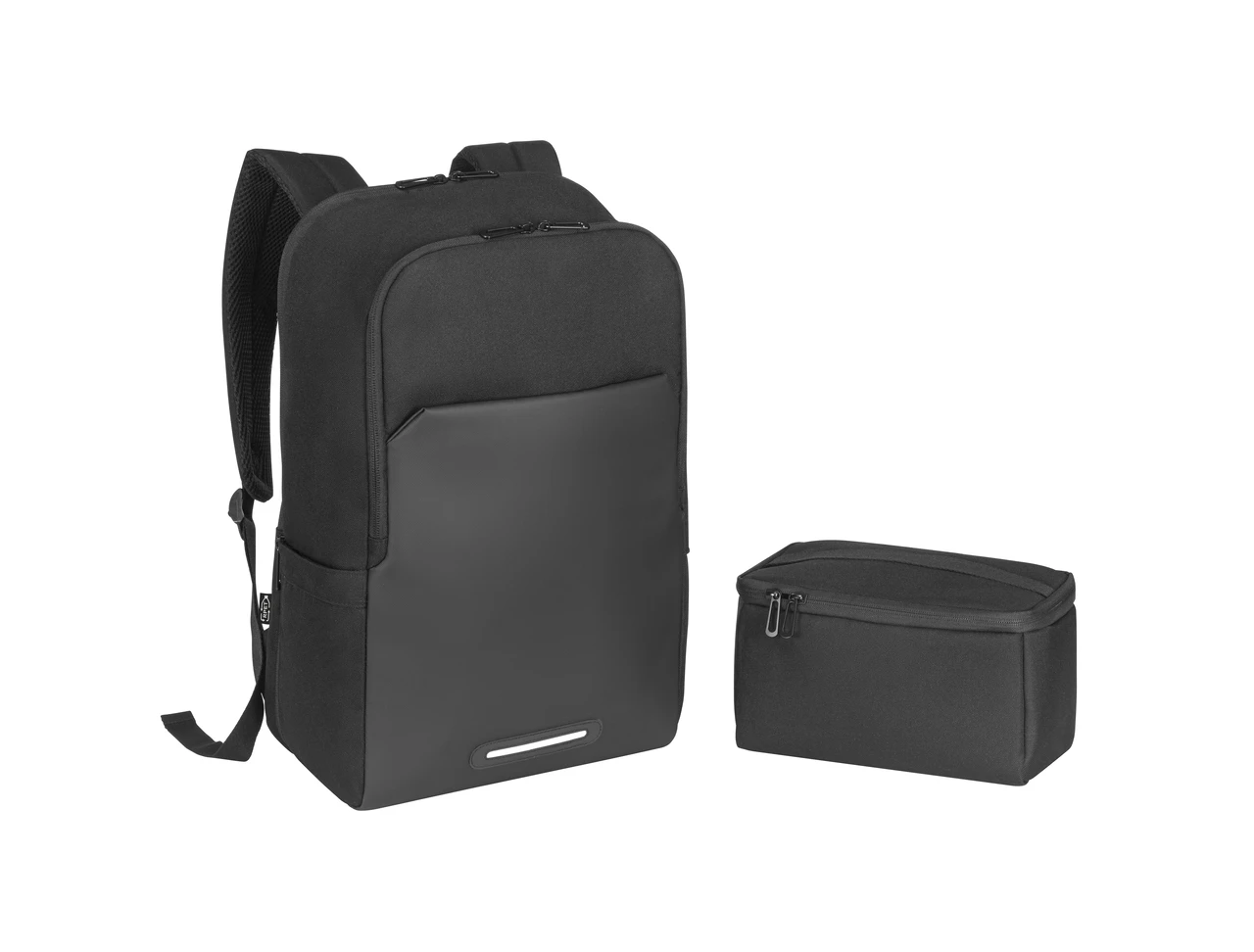 Иновативна комбинация от раница и термо чанта, които могат да се използват заедно или поотделно. Раницата е с вместимост от 20 L, и има отделение за лаптоп до 17,3". Включва предно отделение с подвижна преграда за термо чантата, преден джоб с цип, страничен джоб за бутилка, светлоотразителни детайли и презрамка за закачане за куфар. Термо чантата е с капацитет от 4,5 L и има PEVA изолация.