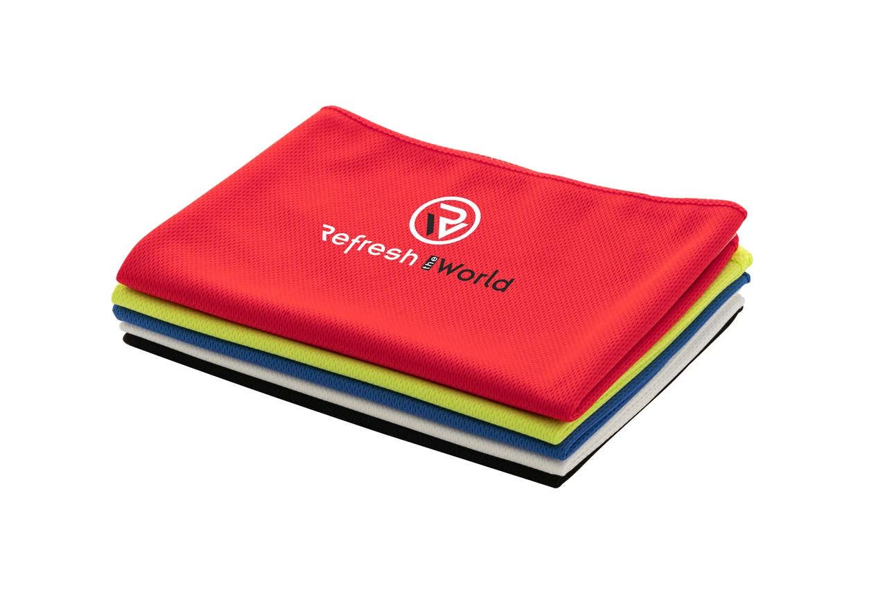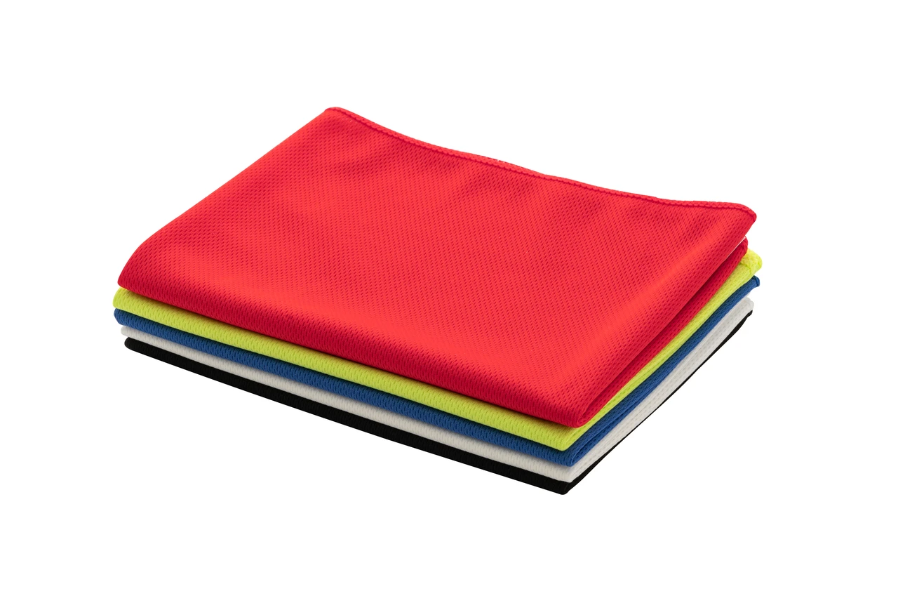 Удобна кърпа за охлаждане по време на спортна активност, изработена от 100% рециклиран полиестер (rPET). Включена е черна нетъкана торбичка за съхранение. Подходяща за многократна употреба и пране в пералня.