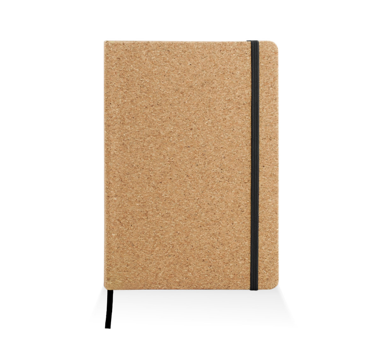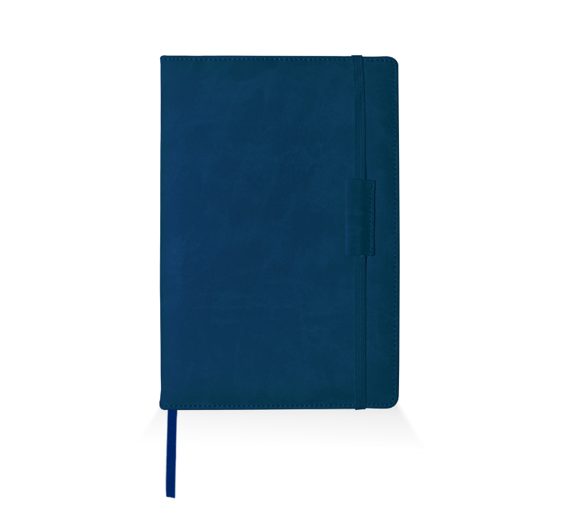 Тефтер A5 с ластик, разделител и място за химикалка, 120 листа с редове, цвят на хартията слонова кост, твърда корица.