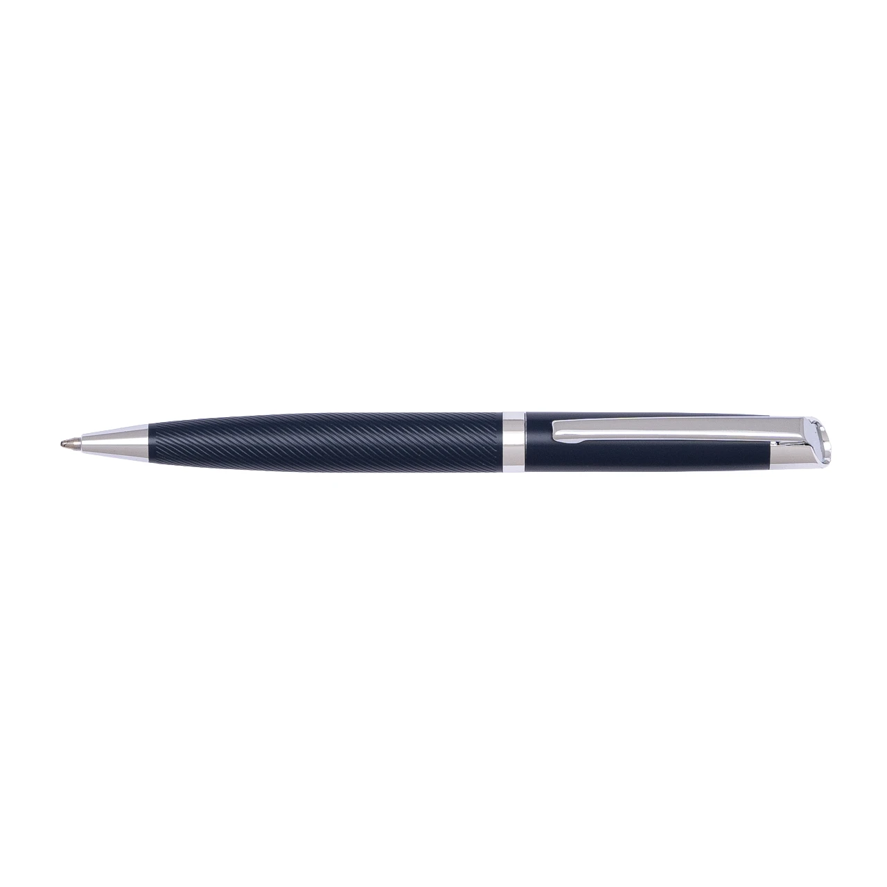 Тази елегантна химикалка е перфектна комбинация от модерен дизайн и практичност. Тя се отличава с гладко, матово черно тяло в горната част и фино набраздена долна част, което допринася за по-удобно захващане. Нейните металик акценти ѝ придават изискан и професионален вид. В черна подаръчна кутия.