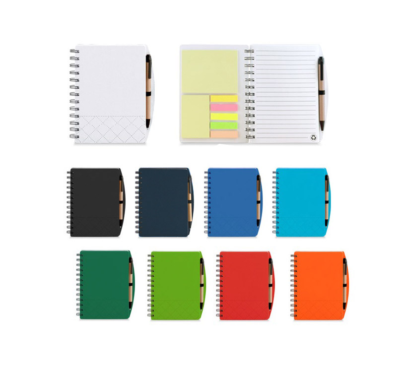 Еко тефтер с еко химикалка, 70 листа с редове, цвят на хартията бял, самозалепващи листчета.