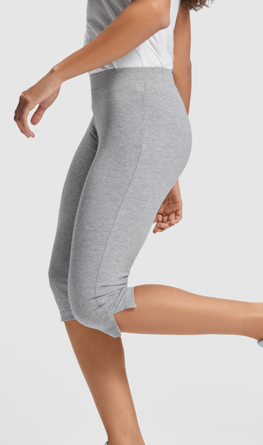 Елегантен дамски спортен клин от плътна памучна материя с процент ликра за еластичност. Клинът е с широк ластик на талията и странична цепка над колянотото на всеки крачол. Удобен за йога, зумба, тае-бо и други спортни занимания и тренировки.