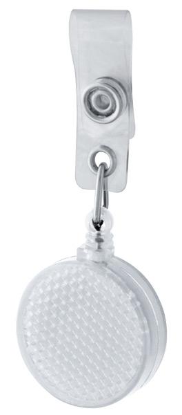 Светлоотразителен бадж холдер. Материал: рефлекторна пластмаса. Размер: Ø32x10 mm. Печатаемо поле: Ø19 mm. Печат: тампонен, обемен стикер.