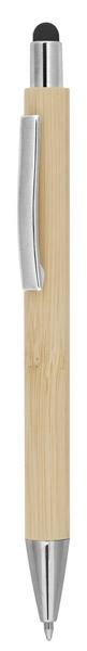 Еко химикалка, обикновен пълнител.  Материал: бамбук, пластмаса и трици.  Размер на артикула: Ø10х143 mm. Печатаемо поле: 45х6 mm. Печат: тампонен, ситопечат, гравиране.  Опаковка: 50 бр. в кутия/1000 бр. в кашон. При поръчка, количеството да е кратно на 50 бр.